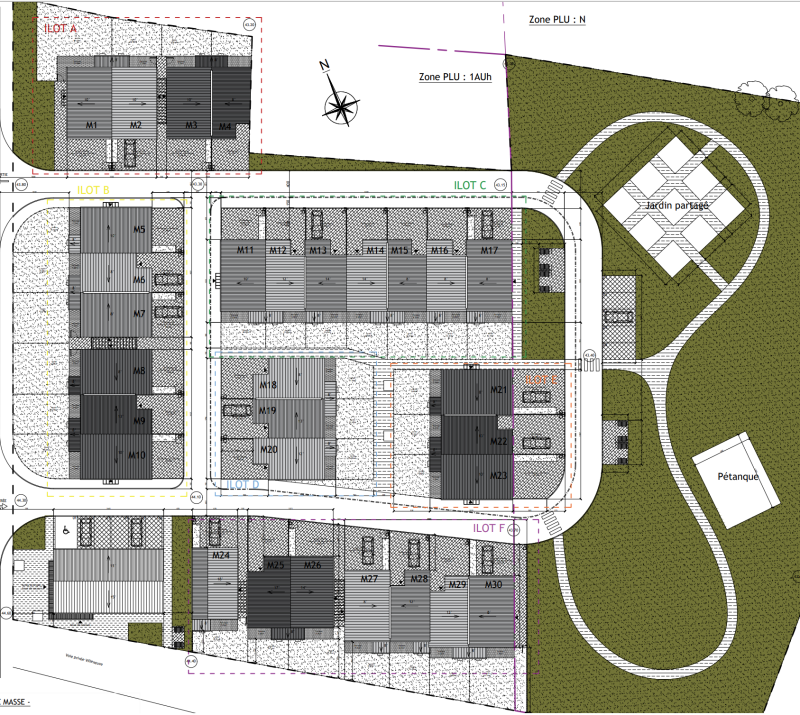 30 villas intelligentes PMR et connectées au service des seniors, construites autour du club house, espace dédié à la convivialité avec salle commune, services médicalisés, cuisine, jeux divers et animations, terrain de pétanque à l'extérieur ainsi qu'un jardin potager partagé. Chaque maison a son emplacement de parking à l'intérieur du complexe.